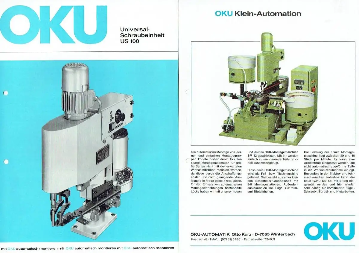 OKU Klein-Automation / Universal-Schraubeinheit US 100 / Okumat 3 Prospekte.