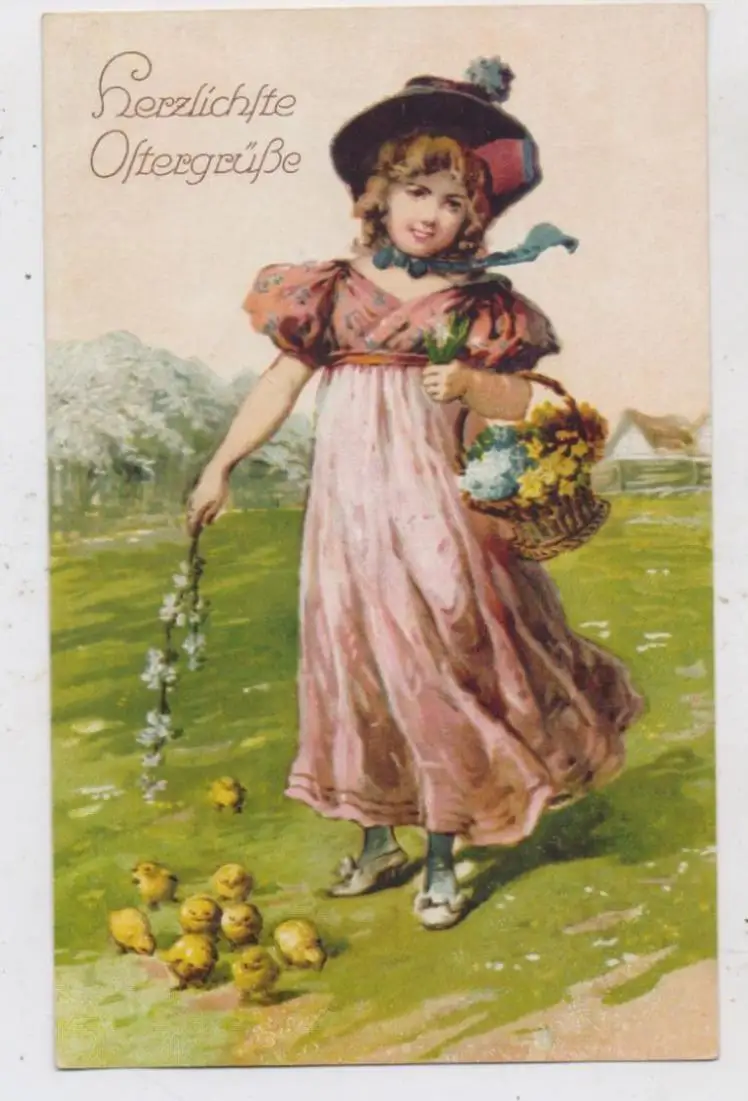 OSTERN - Mädchen in Biedermeier Mode mit Osterkörben