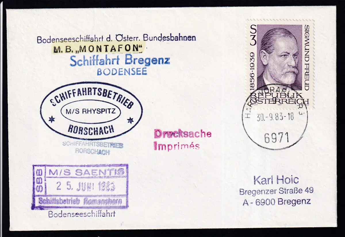 OSt. Hard Vorarlberg 30.9.83 + 3 Cachers auf Brief