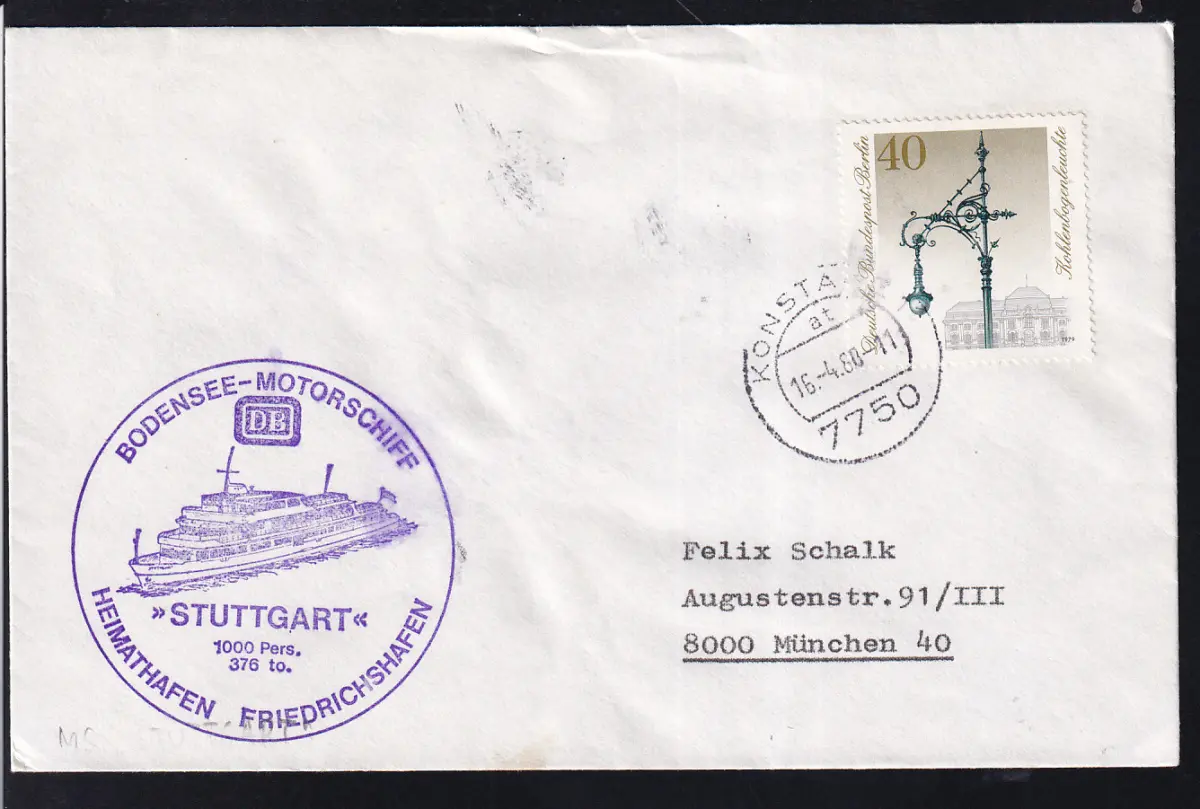 OSt. Konstanz 16.4.80 + Cachet MS Stuttgart auf Brief