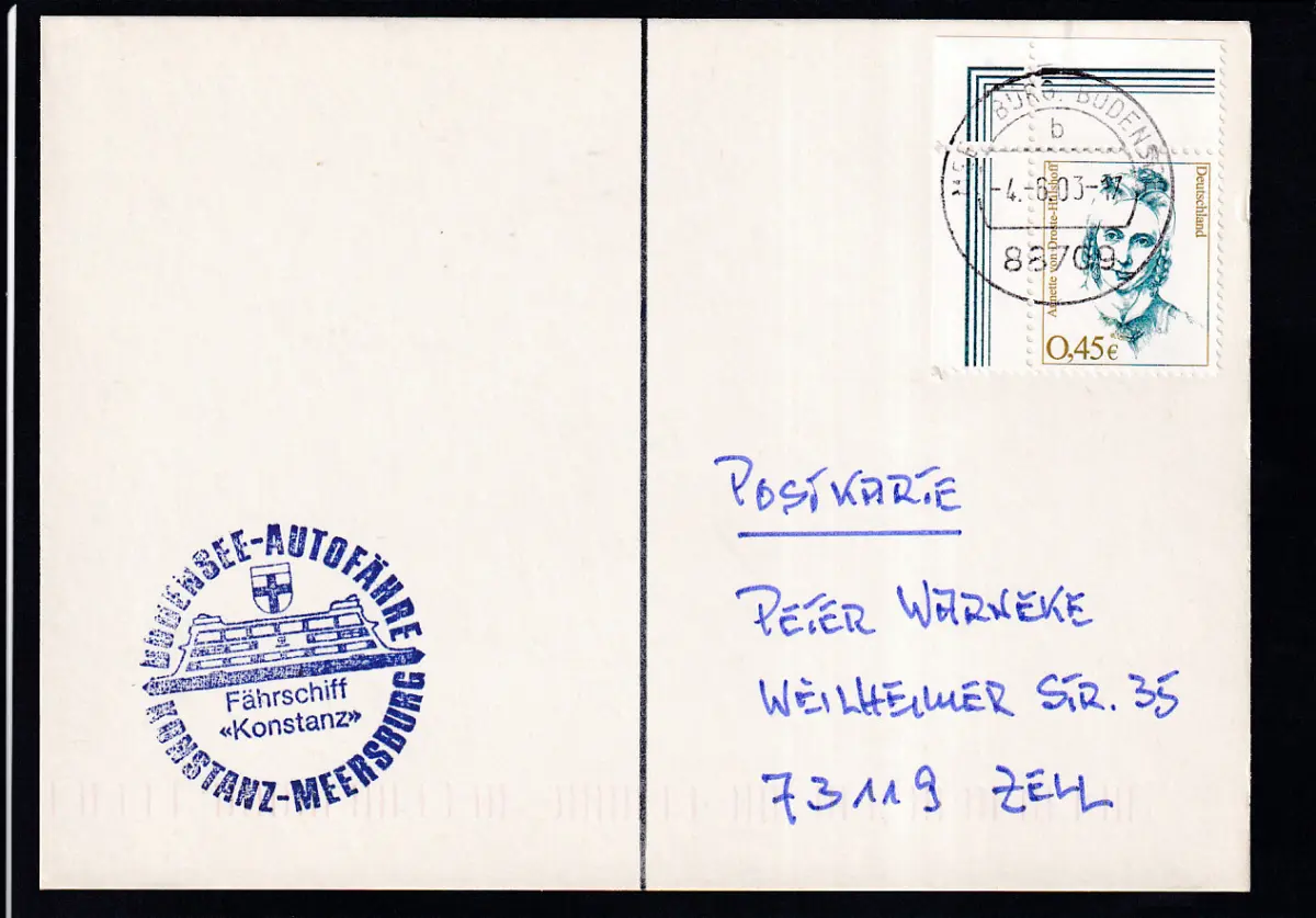 OSt. Neersburg 4.6.03 + Cachet MS Konstanz auf Postkarte