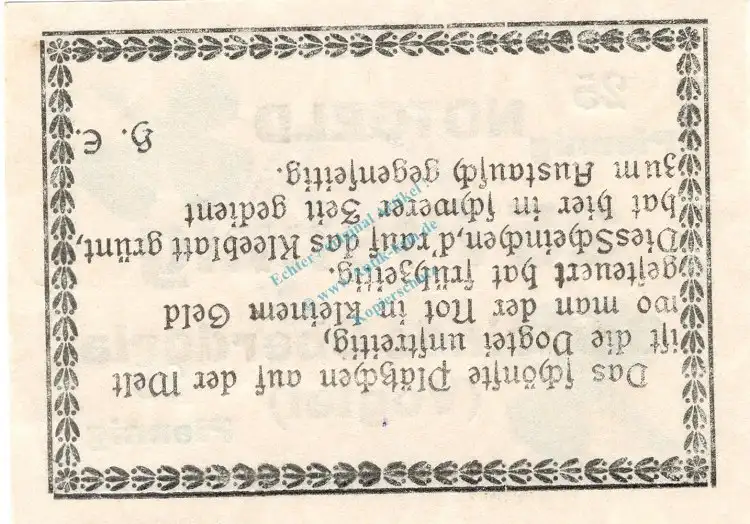 Notgeld : war seinerzeit ein Geld- / Kleingeldersatz . Die gesetzlichen Zahlungsmittel waren knapp, daher wurde das
