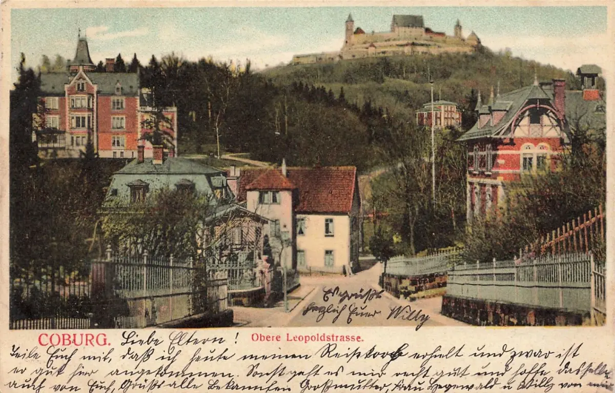 Obere Leopoldstrasse in Coburg Bayern Postkarte AK 1906