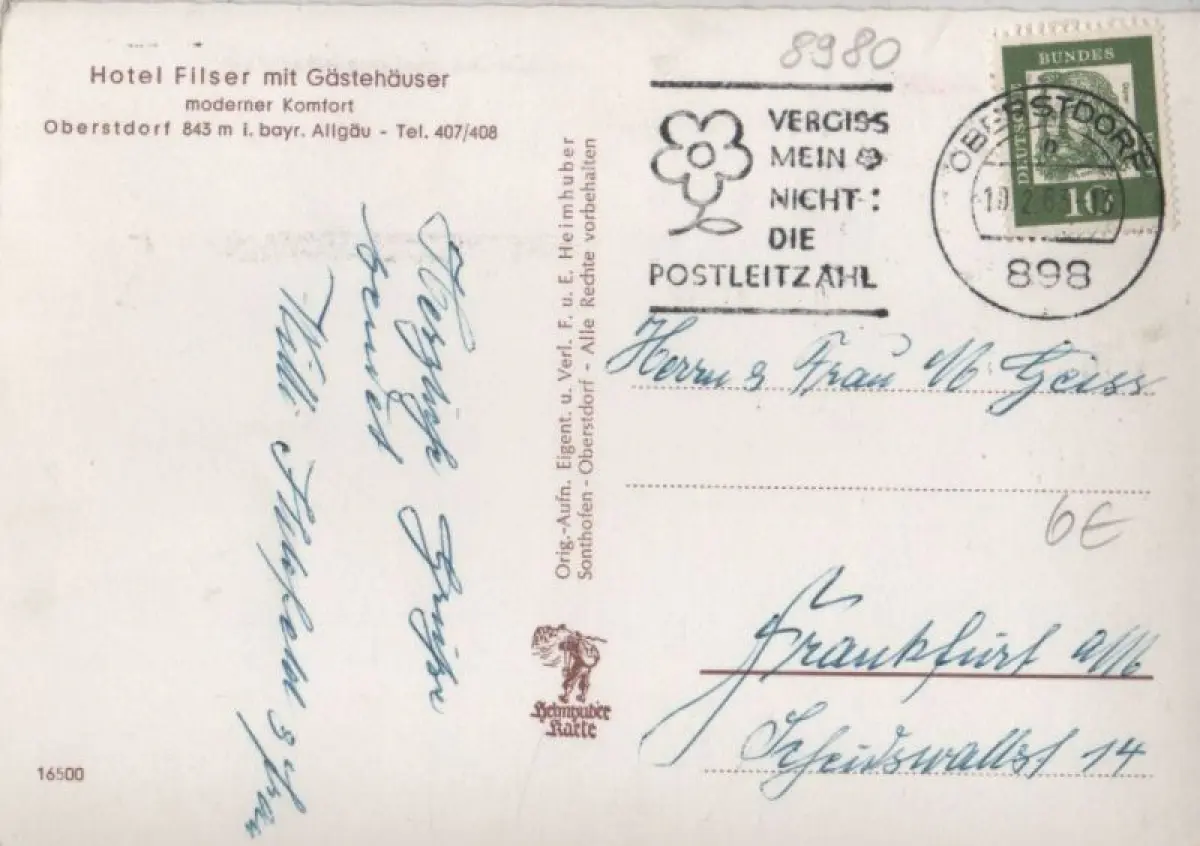 Postleitzahl:87561 (neu) / W 8980 (alt)