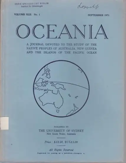 Titel: Oceania : A Journal devoted to the Study of the Native Peoples of Australia, New Guinea and the Islands of the Pacific Ocean. Published by The University of Sydney. Vol. XLII, No. 1, September 1971