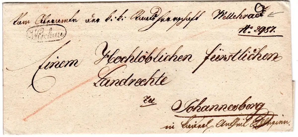 Österreich 1839, Schreibschrift-Ovalstpl. Wischau auf Franko Brief