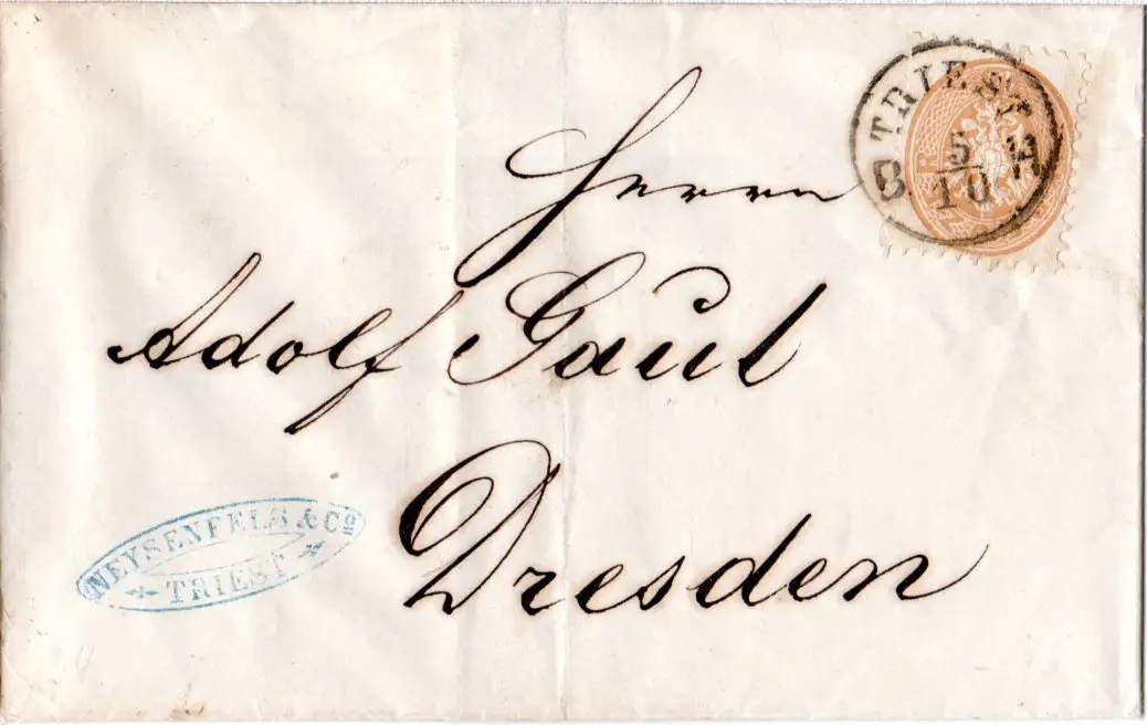 Österreich 1864, 15 Kr. auf Brief v. TRIEST n. Dresden, Sachsen.