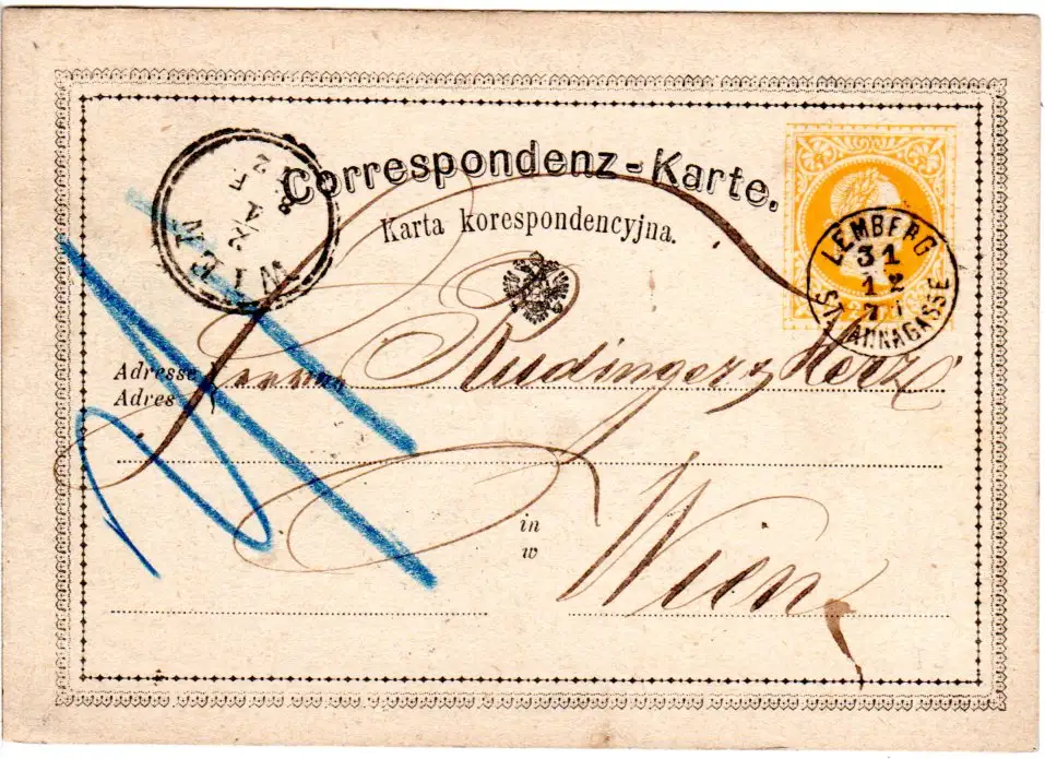 Österreich 1871, 2 Kr. Ganzsache m. Fingerhut Stpl. LEMBERG ST. ANNAGASSE