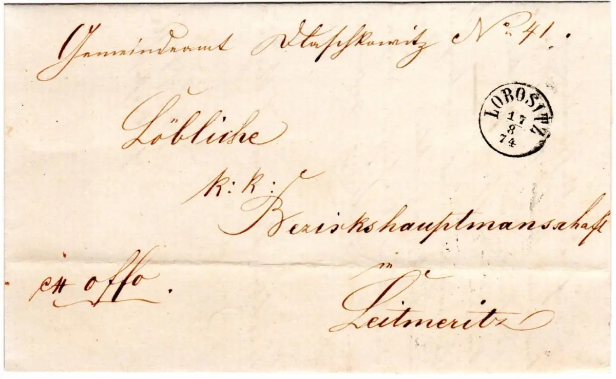 Österreich 1874, Böhmen Fingerhutstpl. LOBOSITZ auf schönem Brief n. Leitmeritz