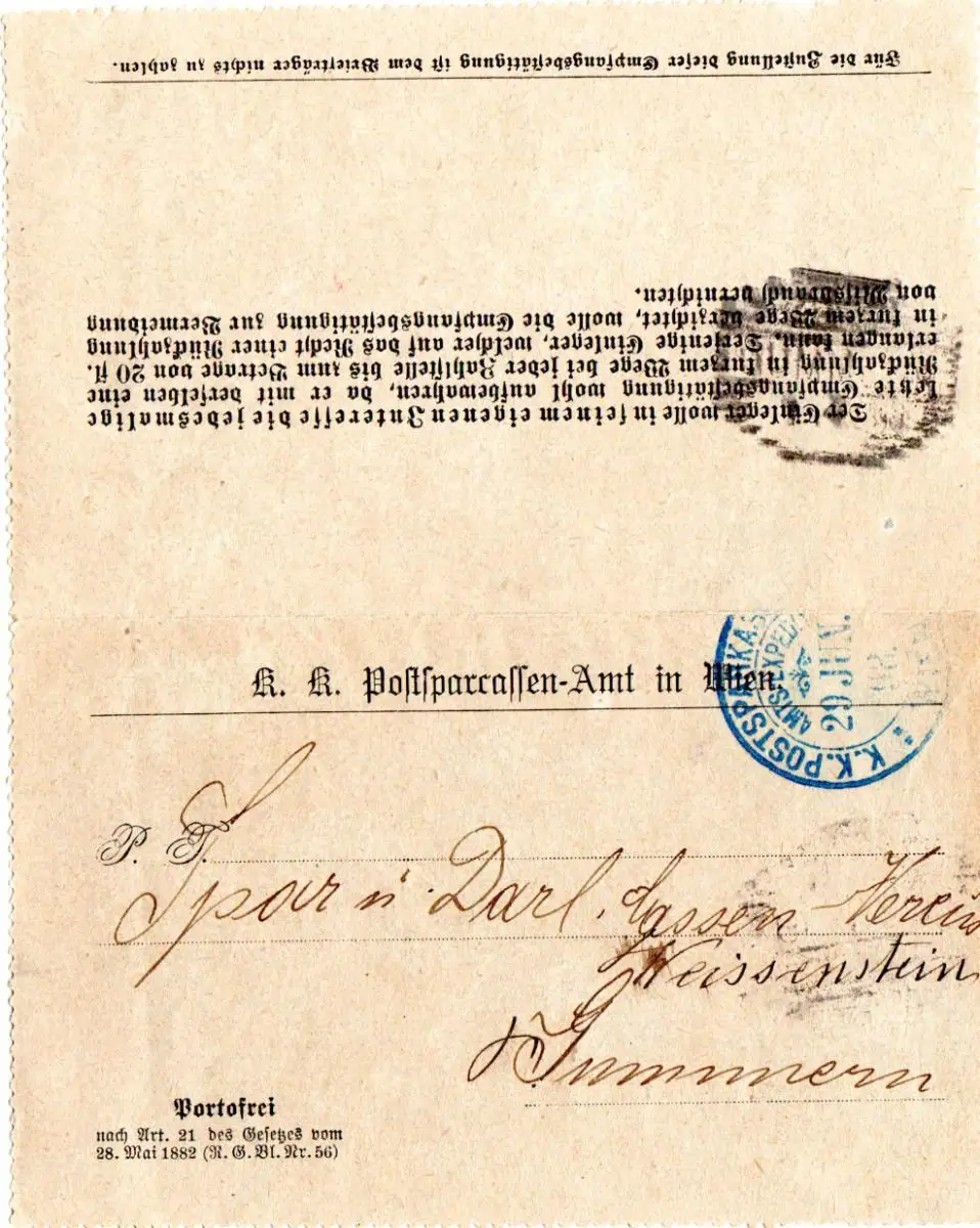 Österreich 1898, Kartenbrief m. blauem Stpl. K.K. POSTSPARKASSENAMT WIEN