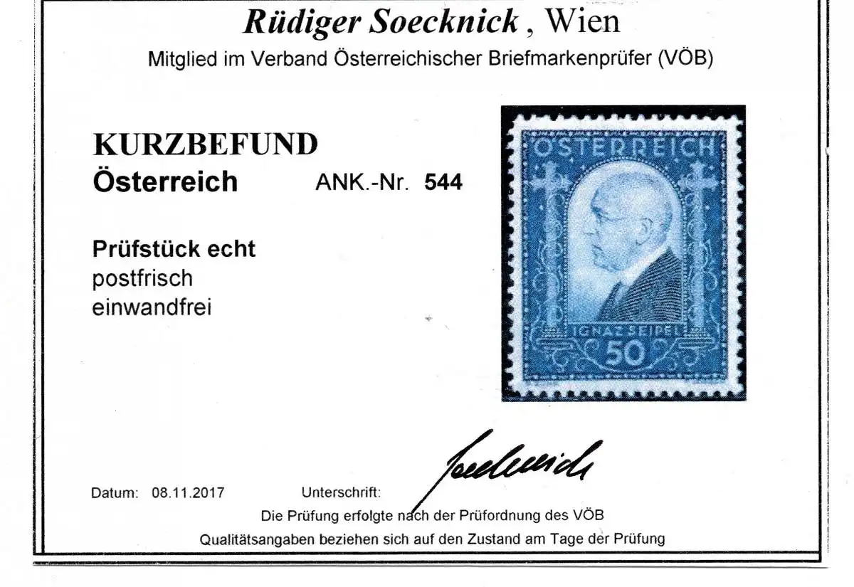 Postfrischer Wert zum Tod von Ignaz Seipel mit Befund Soecknick
