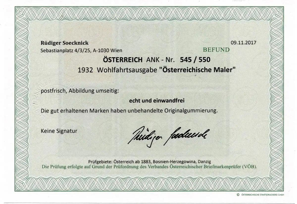 Kompletter postfrischer Satz Wohlfahrt mit Befund Soecknick