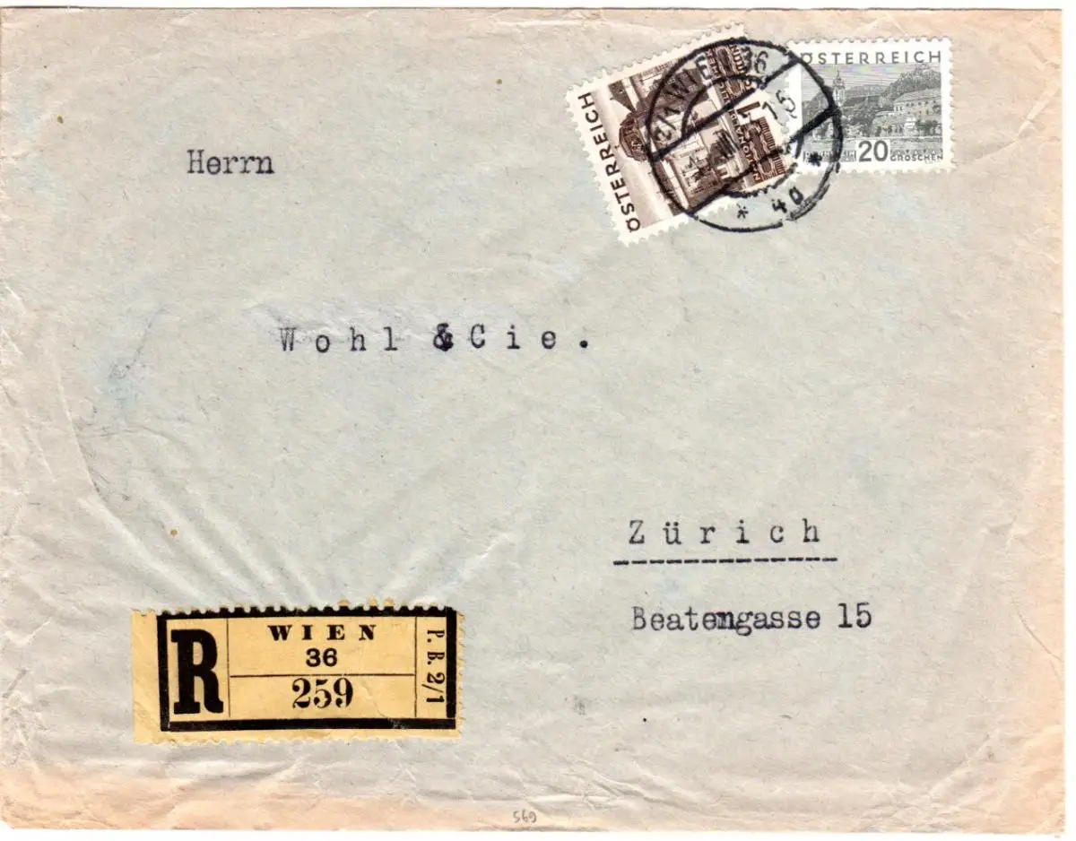 Österreich 1933, 1 S.+20 G.auf reko Brief v. Wien i.d. Schweiz