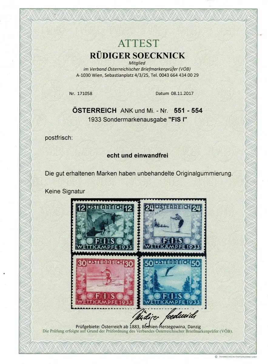 Kompletter postfrischer Satz FIS Wettkämpfe Innsbruck mit Attest Soecknick