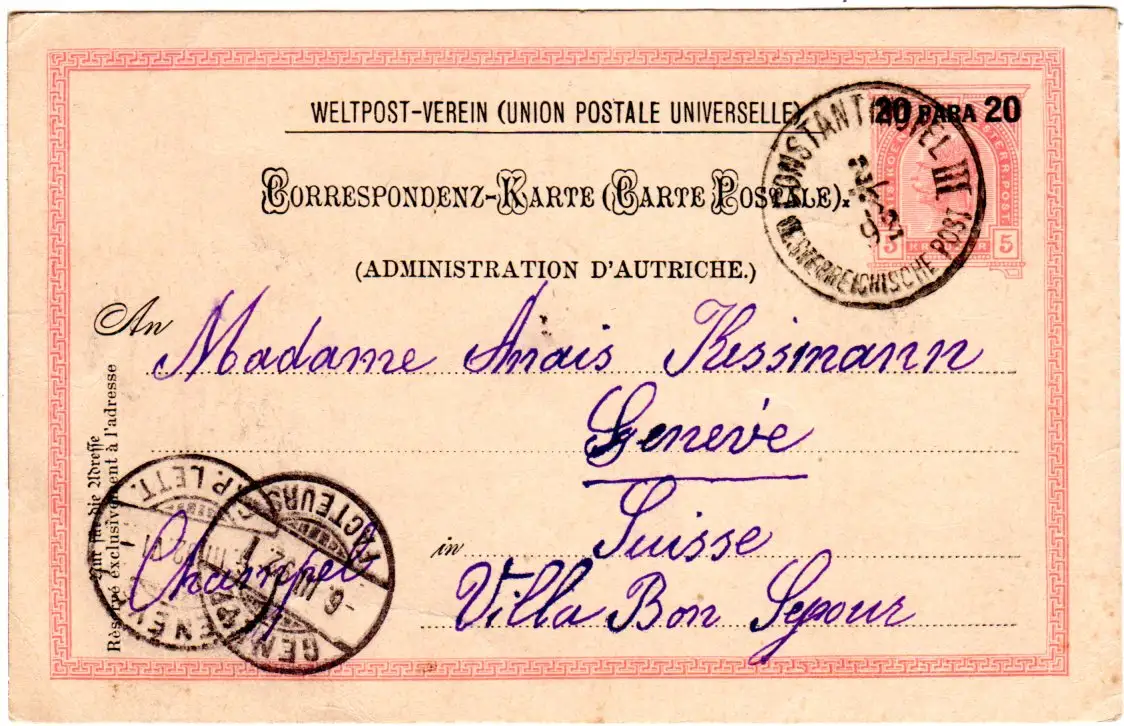 Österreich Levante 1892, 20 P. Ganzsache, sauber gebr. v. CONSTANTINOPEL III