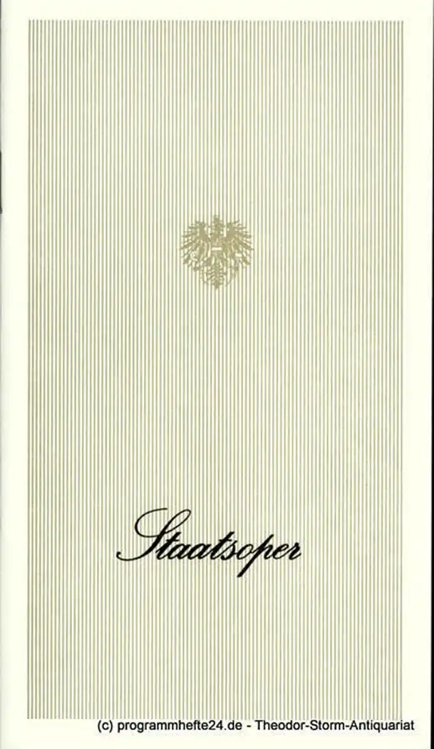 Dirigent: Hermann Michael. Nach einer Inszenierung von Wener Düggelin. Bühnenbild und Kostüme: Jörg Zimmermann. Mitwirkende: Hans Christian, Hildgard Uhrmacher, Hilda de Groote, Horst Laubenthal, Heinz Zednik, Manfred Jungwirth - Theaterprogramm, Opernprogramm, Ballettprogramm, Musicalprogramm, Konzertprogramm, Theatermemorabilia, Programmhefte Sammlung, deutsche Theatergeschichte.