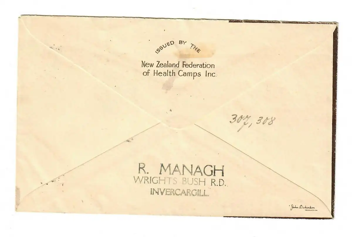 Official sopuvenir Cover, Invercargill, Health stamps send Children 1949 to Berne