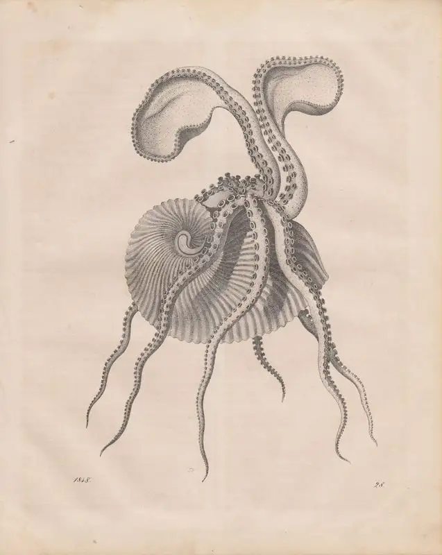 (Ohne Autor), Papiernautilus. Glasboot. (Argonauta. Weichtier. Octopoda). (Stahlstich von 1848)