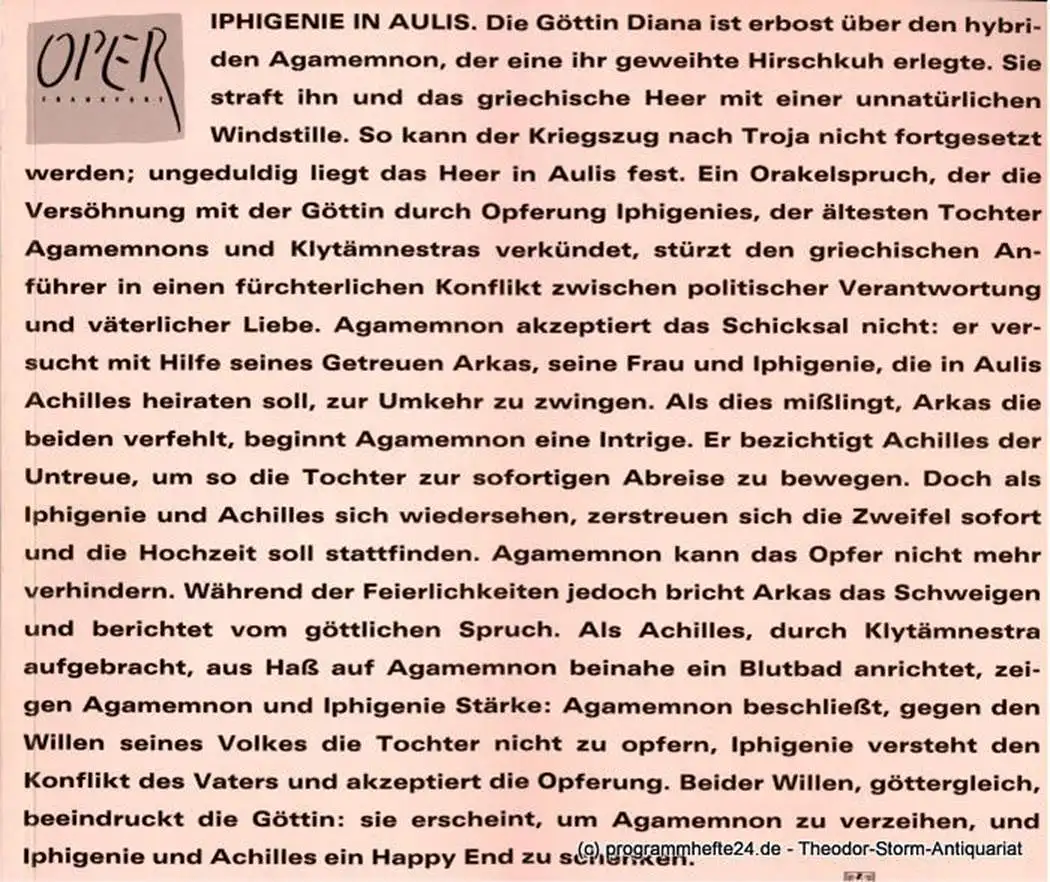 Titel: Programmheft zur Neuinszenierung von Iphigenie in Aulis / Iphigenie auf Tauris von Christoph Willibald Gluck. Premiere 30. Oktober 1987