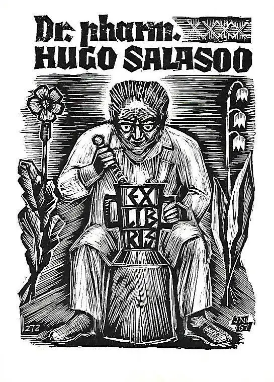 Schlagworte: Exlibris, Grafik, Original-Grafik, Maiglöckchen, Alter Mensch