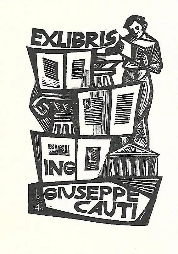 Schlagworte: Exlibris, Grafik, Original-Holzschnitt, Holzschnitt, Bücher, Architektur, Italien