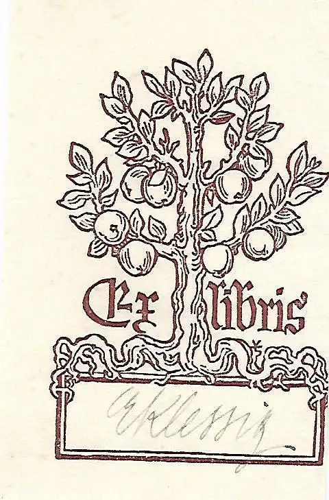 Schlagworte: Exlibris, Grafik, Original-Kupferstich, Kupferstich, Apfelbaum
