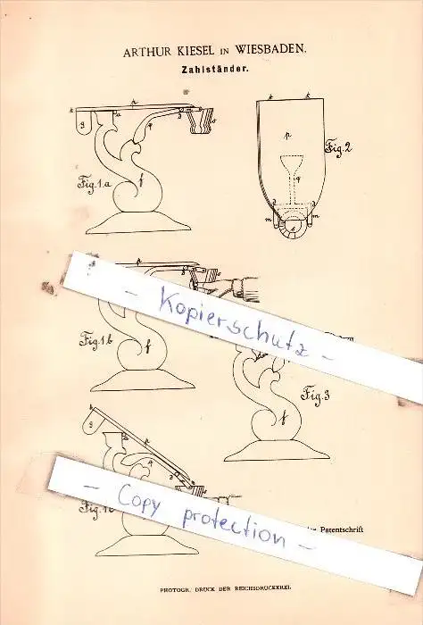 Original Patent - Arthur Kiesel in Wiesbaden , 1891 , Zahlständer !!!