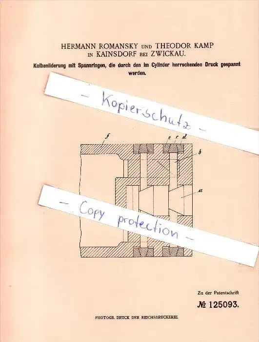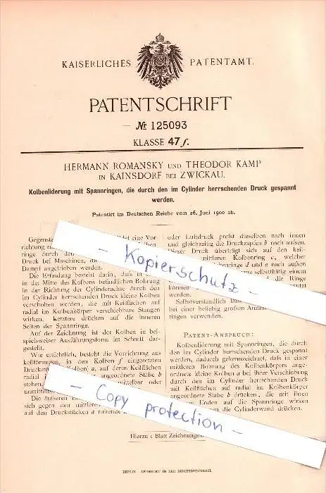 Original Patent - Hermann Romansky und Theodor Kamp in Kainsdorf bei Zwickau , 1900 , Maschinen!!!