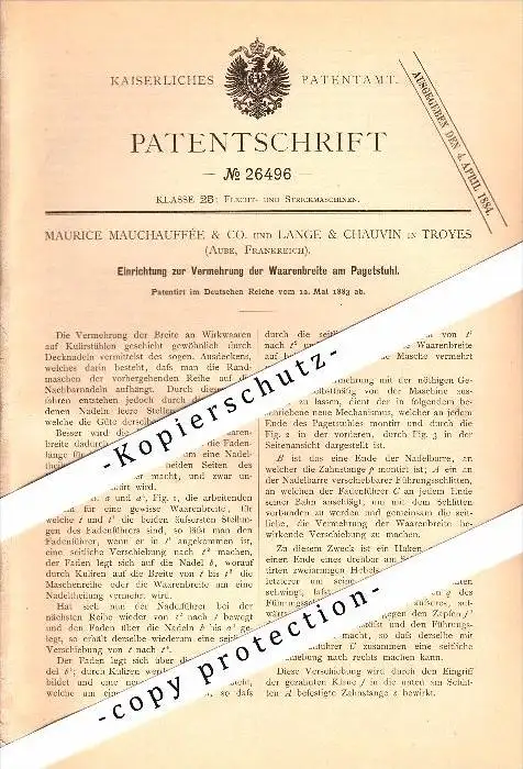 Original Patent - Maurice Mauchauffée & Co à Troyes , Aube , 1883 , Dispositif pour machine à tricoter , Lange & Chauvin