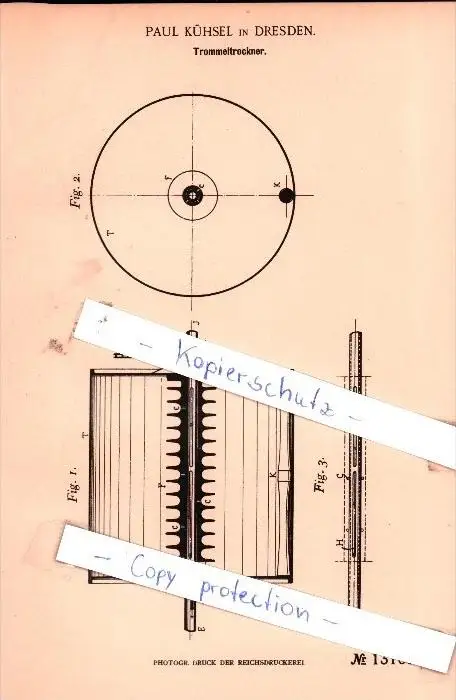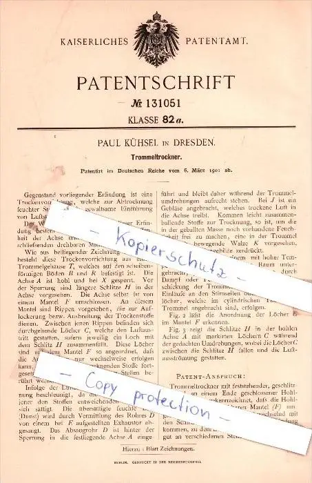 Original Patent - Paul Kühsel in Dresden , 1901 , Trommeltrockner !!!