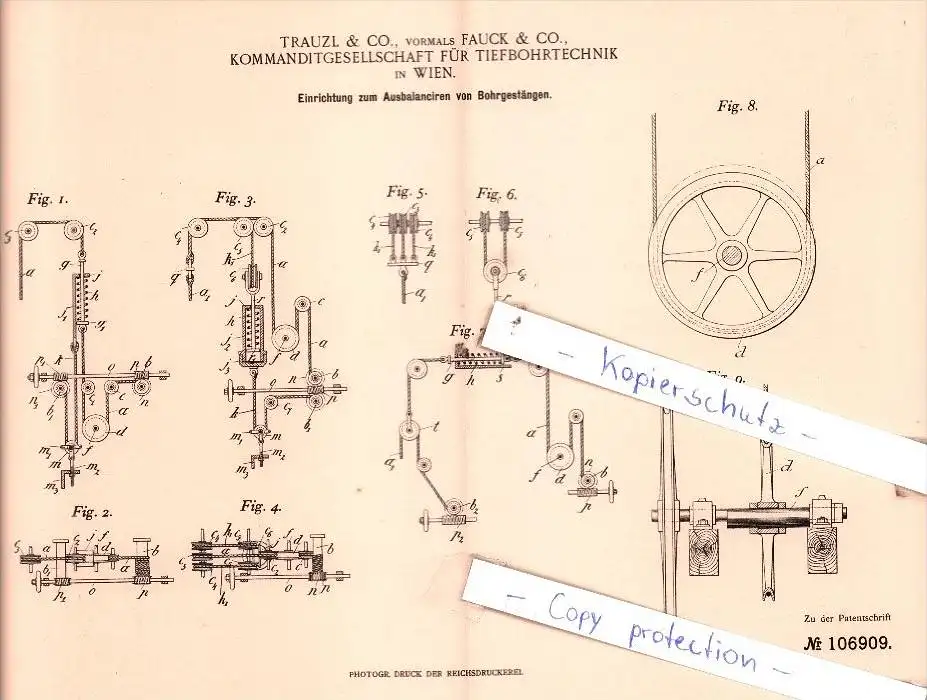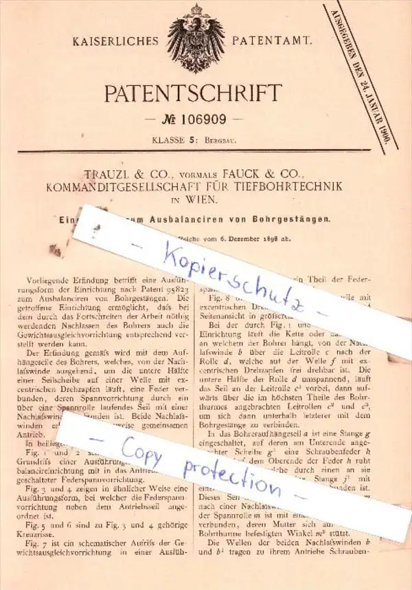 Original Patent - Trauzl & Co., vormals Fauck & Co., Kommanditgesellschft für Tiefbohrtechnik in Wien !!!