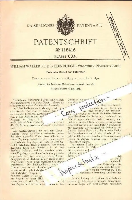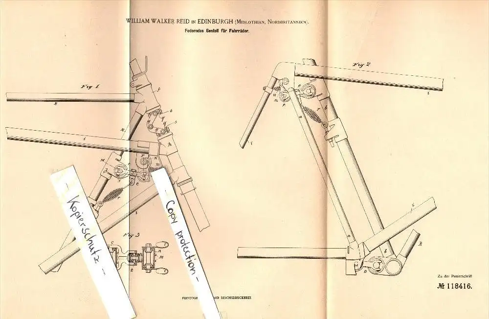 Original Patent - Wiliam Walker Reid in Edinburgh , 1900 , Spring-loaded rack for bicycle !!!