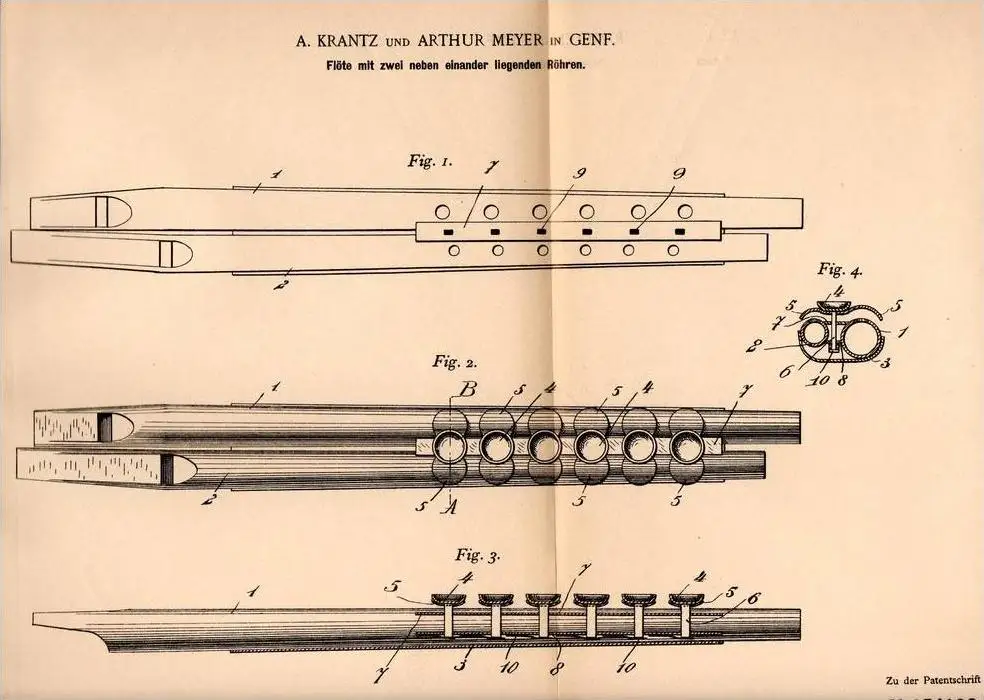 Patent: Flöte mit zwei neben einander liegenden Röhren