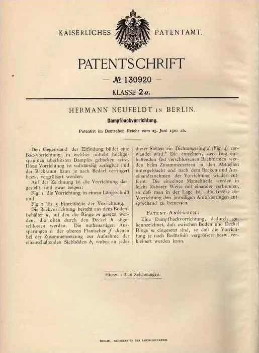 Original Patentschrift - Backofen , Dampfbackofen , 1901 , H. Neufeldt in Berlin , Bäcker , Bäckerei !!!
