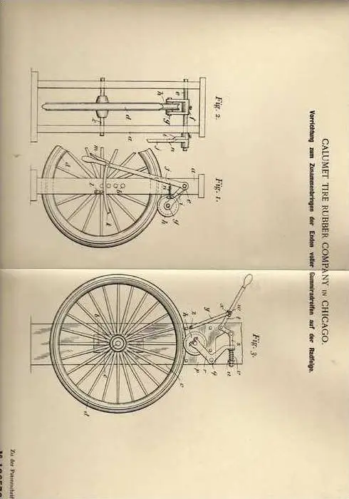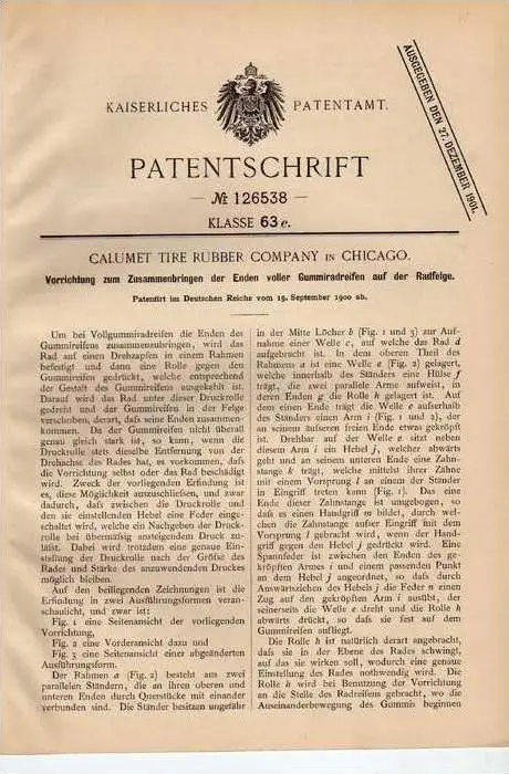 Original Patentschrift - Calumet Tire Rubber Company in Chicago , Reifen Maschine , 1900 !!!