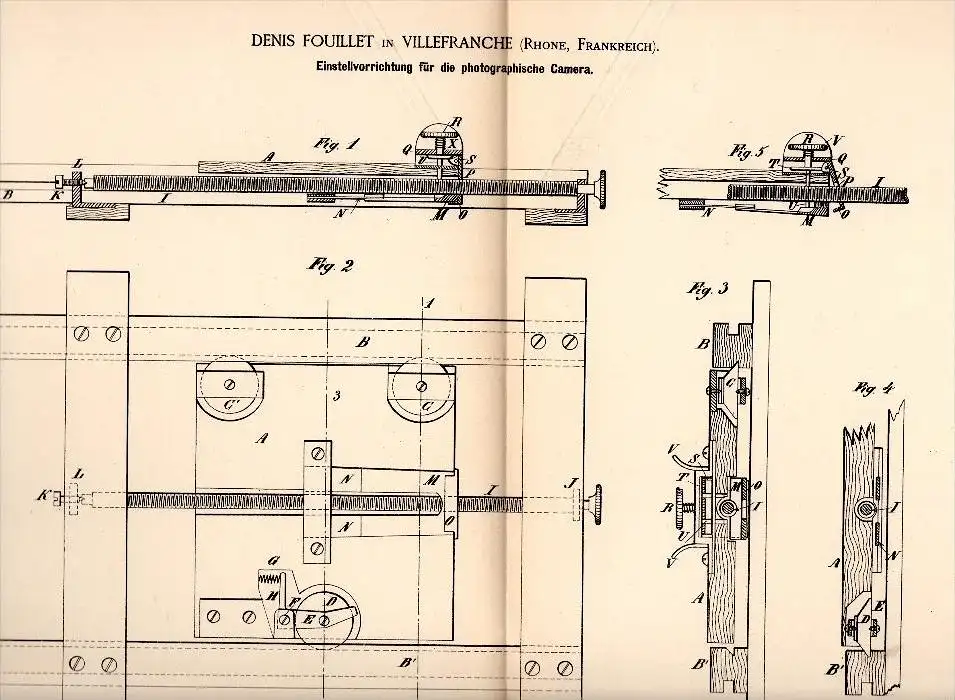 Original Patentschrift -Denis Fouillet dans Villefranche sur Saône ,1885,Ajusteur pour appareil photographique , photo !