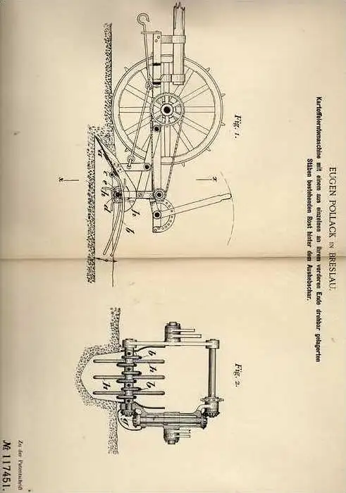 Original Patentschrift - E. Pollack in Breslau , 1900 , Kartoffelerntemaschine , Landwirtschaft , Agrar !!!