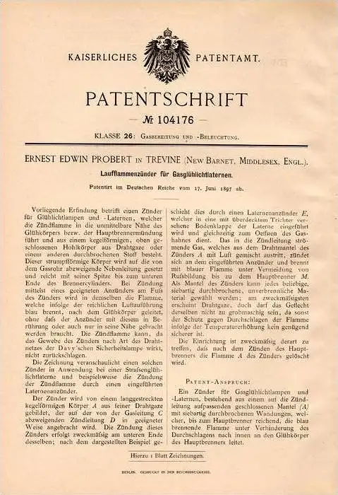 Patent: Laufflammenzünder für Gasglühlichtlaternen