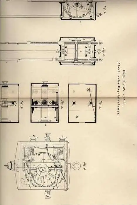 Original Patentschrift - Elektr. Regulator Lampe , 1882 , E. Bürgin in Basel !!!