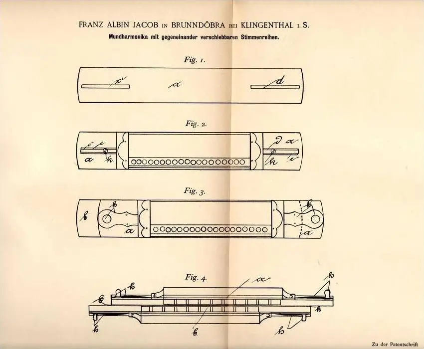 Patent: Mundharmonika mit gegeneinander verschiebbaren