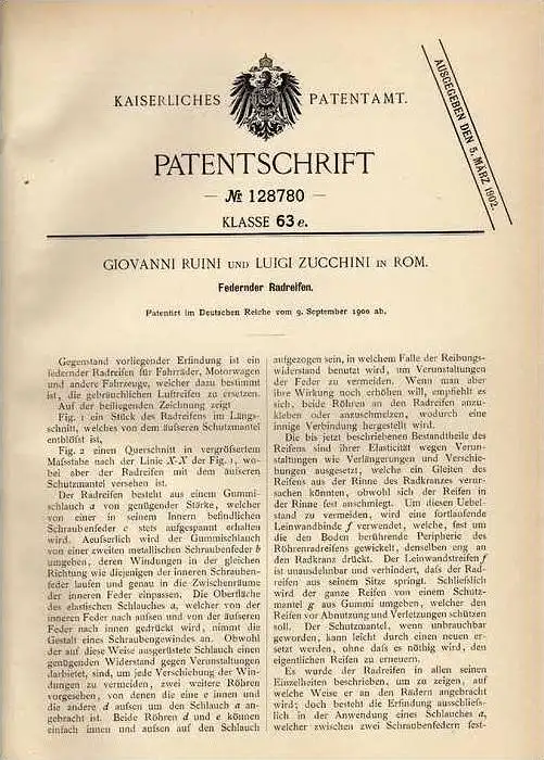 Original Patentschrift - G.Ruini in Rom , 1900 , Federnder Reifen , Radreifen , Rad !!!