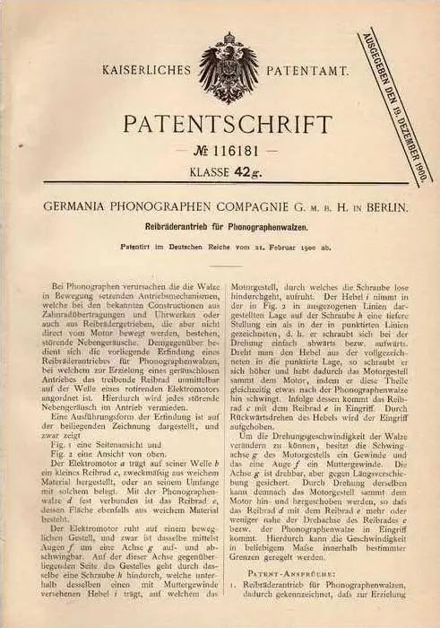 Patentinhaber: Germania Phonographen Compagnie GmbH in