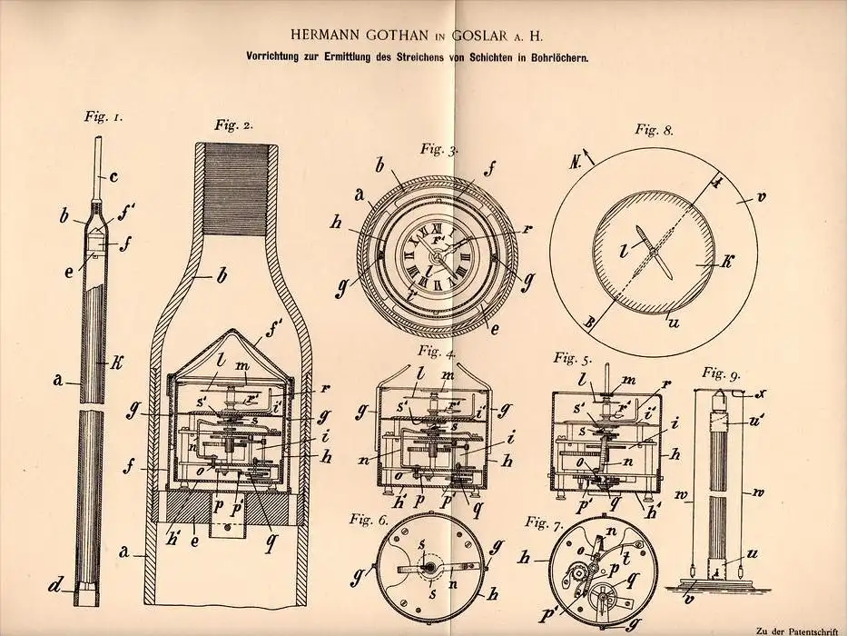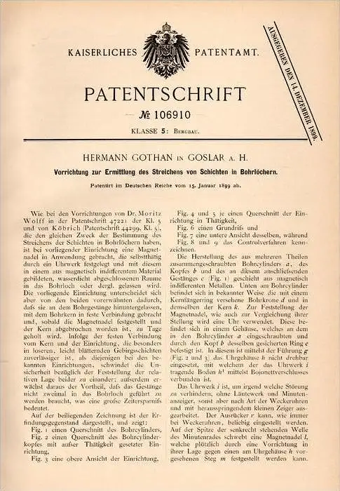Original Patentschrift - H. Gothan in Goslar a.H. , 1899 , Apparat für Bohrlöcher , Tiefbohrung , Bergbau , Tunnelbau !!