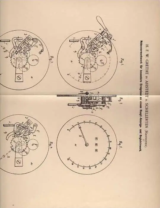 Original Patentschrift - H. Grethe in Ahstedt b. Schellerten , 1894 , Zählwerk , Instrument , Registrieruhr !!!