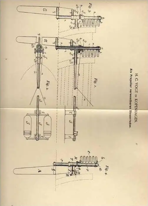 Original Patentschrift - H. Vogt in Kopenhagen , 1894 , Steuerruder als Propeller !!!