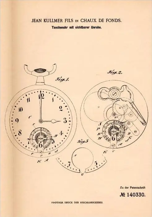 Patent: Taschenuhr mit sichtbarer Unruhe