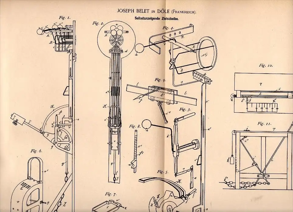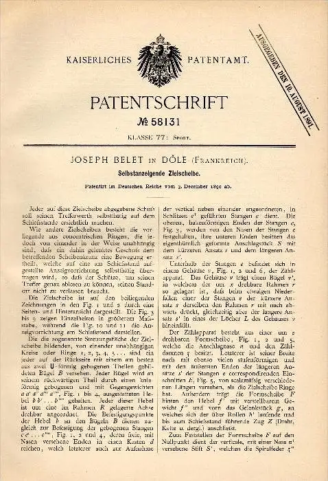 Original Patentschrift - Joseph Belet dans Dole , Jura , 1890 , cible d'un indicateur, le tir , protéger guilde !!!