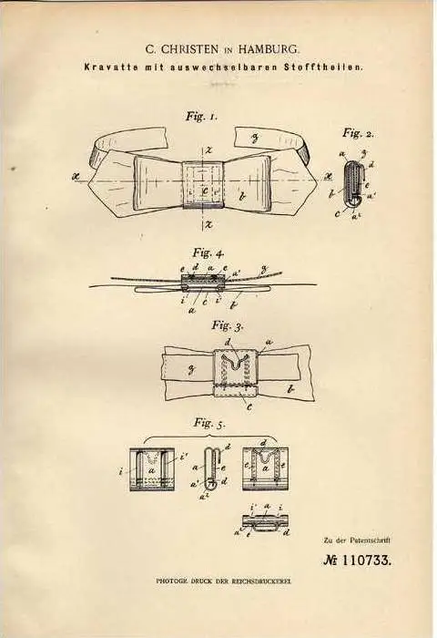Original Patentschrift - Kravatte mit wechselbaren Stofftheilen , 1899 , C. Christen in Hamburg !!!