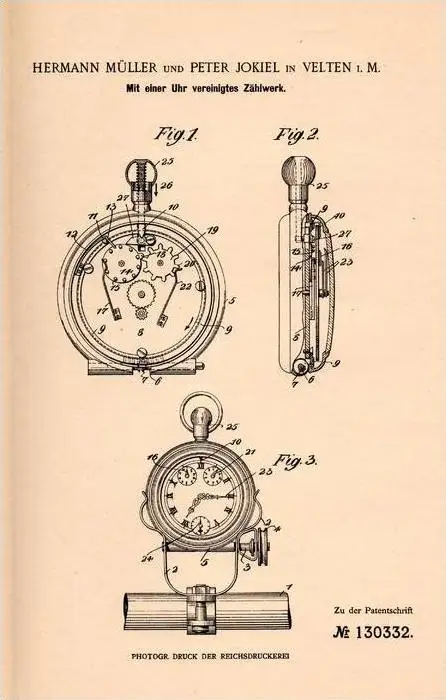Original Patentschrift - P. Jokiel in Velten i.M., 1901 , Uhr mit Zählwerk !!!