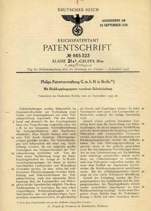 Original Patentschrift - Philips Patentverwaltung GmbH in Berlin ,1935 , Gabelschaltung , Schaltung , Elektronik !!!